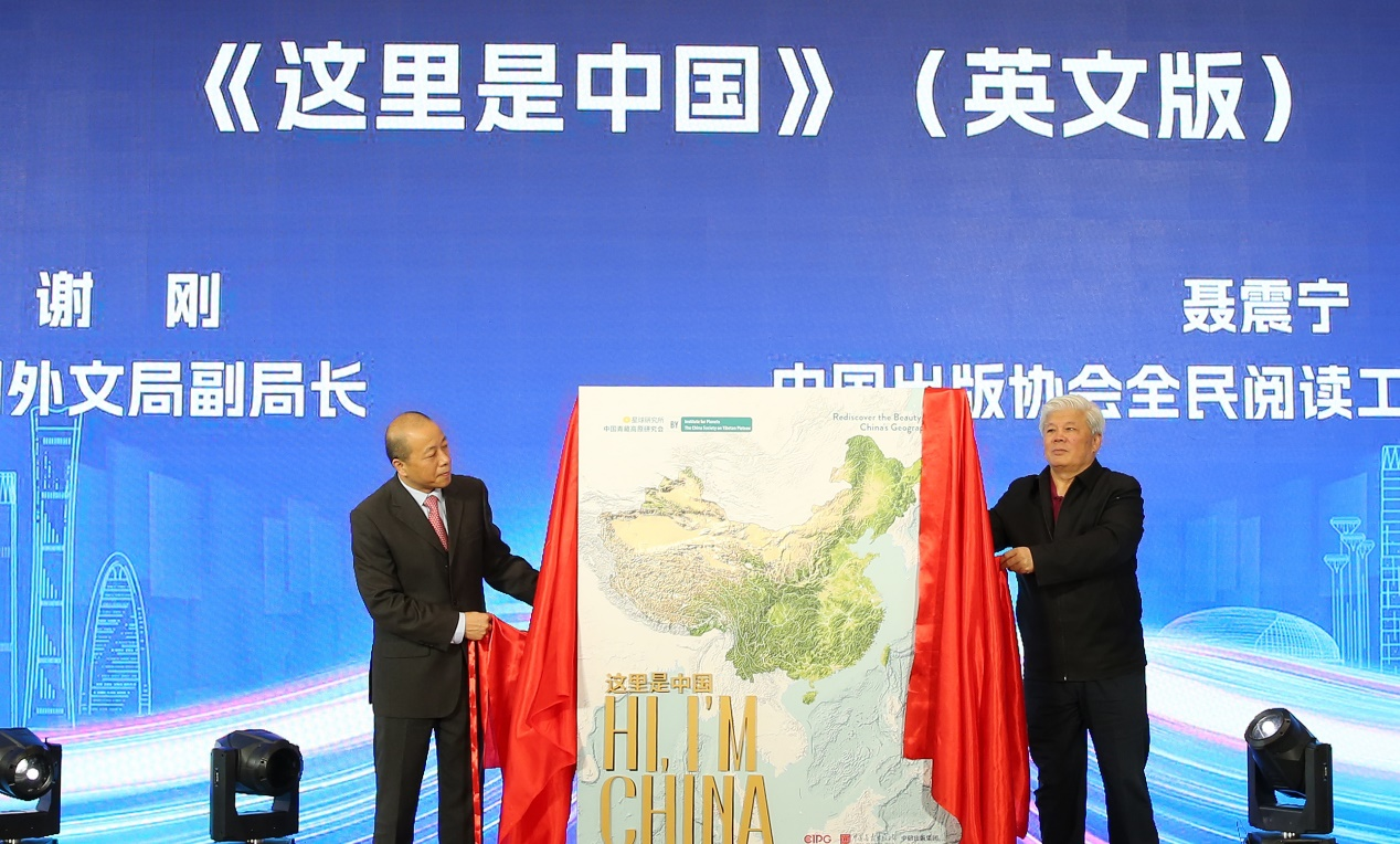 ▲谢刚、聂震宁为《这里是中国》(英文版)新书发布揭幕。