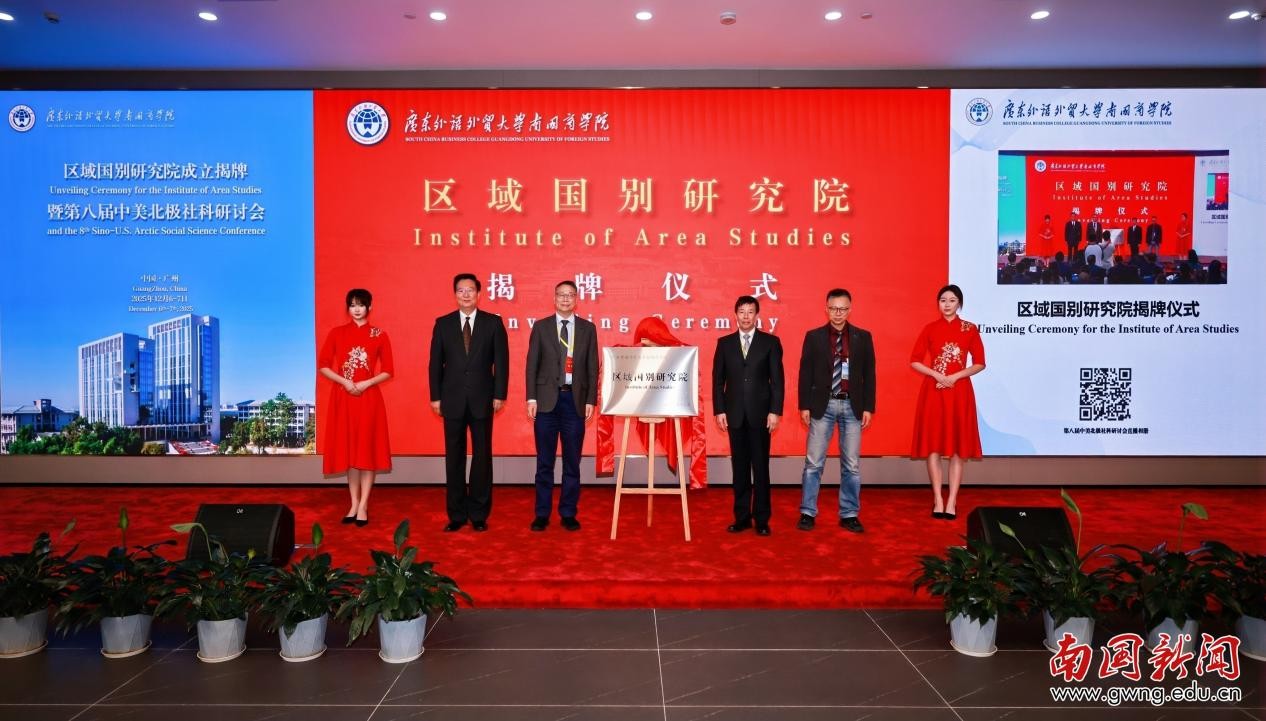 发布时间:2025-12-10 11:20:41 | 来源:中国网 | 作者: | 责任编辑:孙灵萱2025年12月6日,广东外语外贸大学南国商学院(以下简称“南国商学院”)区域国别研究院正式揭牌成立,第八届中美北极社科研讨会同步启动,国内首部系统梳理北极气候政策的《北极国家应对气候变化的政策及行动》丛书发布。本次活动汇聚来自中国、美国等国家60余位专家学者,围绕北极治理、地缘政治、海洋安全等议题展开深度研讨,展现学校在区域与国别研究领域的平台整合能力与学术影响力。