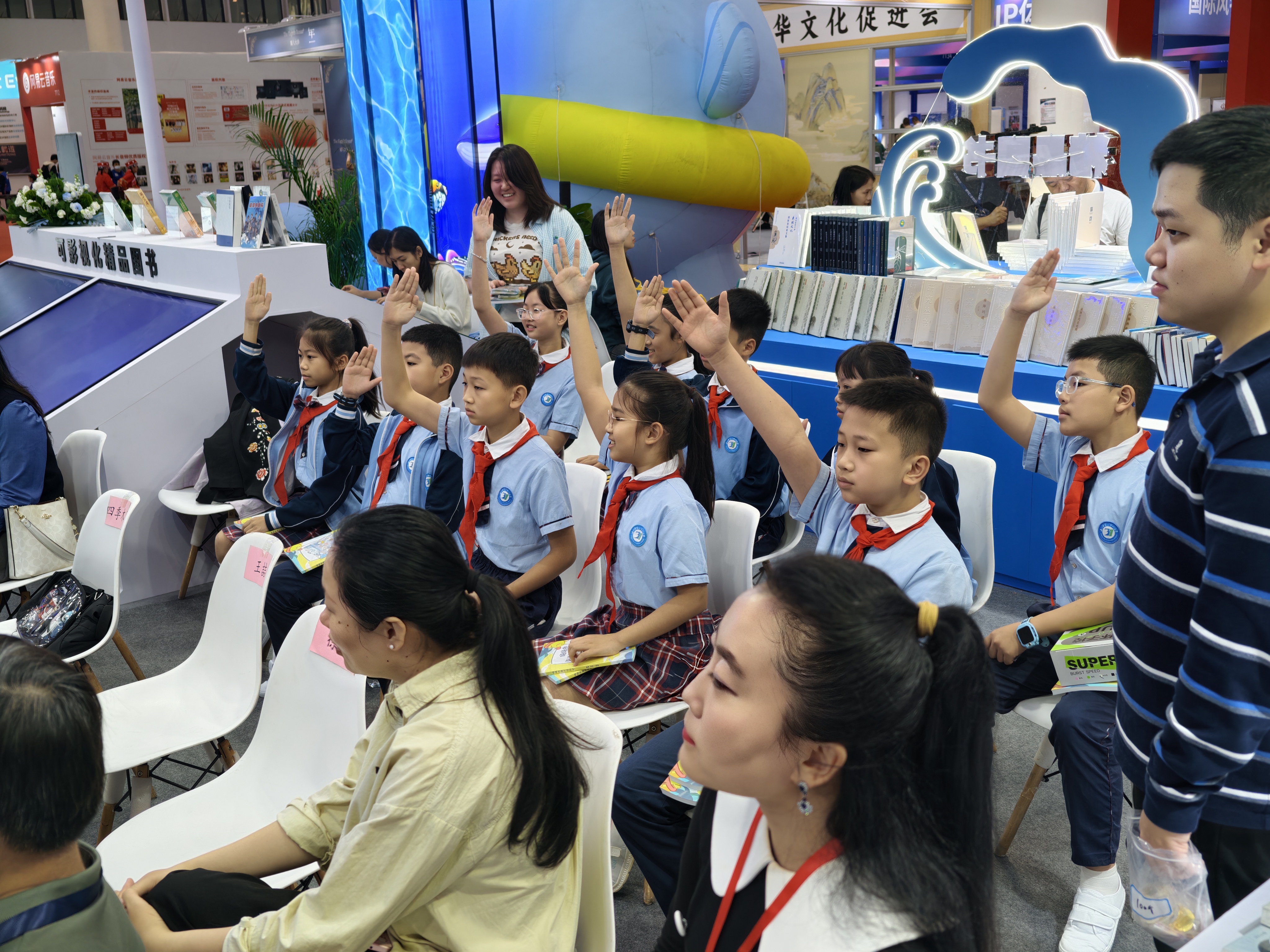 活动现场还举行了赠书仪式。华语教学出版社专职副书记宋培军向海口市第三十一小学赠送了新书,希望将海洋探索的乐趣和环保理念传递给更多孩子。