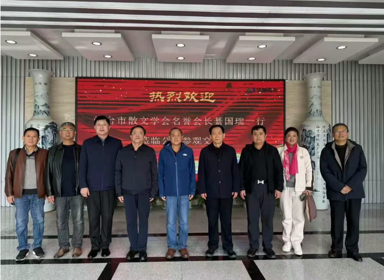 烟台市散文学会领导参观华鼎公司合影留念(右三为公司董事长刘尚伟、右四为作者)